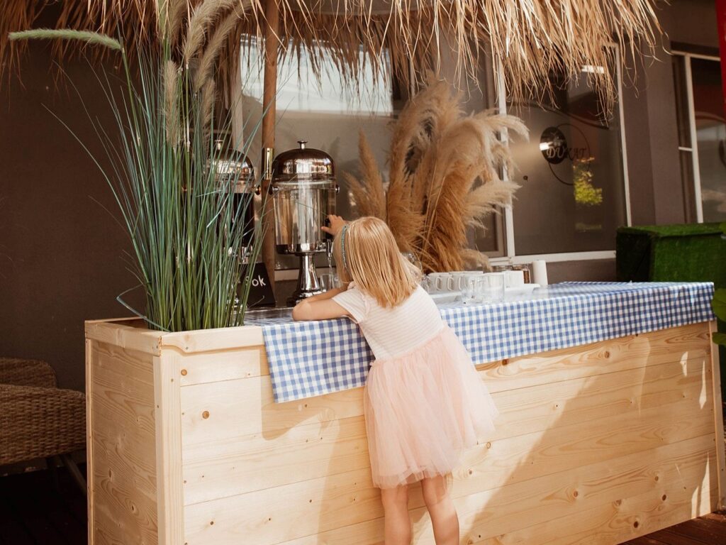 Przy strefie basenowej znajduje się też nasz Bar letni AHOJ, gdzie dostępne są napoje bezalkoholowe, alkoholowe, przekąski oraz lody.